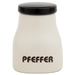 Il barattolo per spezie «Pfeffer» HB 556 convince per la sua forma compatta ed elegante, perfetta per conservare il pepe macinato o in grani. Con un’altezza di 8,5 cm e una capacità di 0,13 litri, offre spazio sufficiente per mantenere la spezia asciutta e aromatica. Il corpo color crema con la scritta distintiva «PFEFFER» e il coperchio nero a chiusura ermetica rendono questo barattolo un compagno pratico ed elegante in ogni cucina. Questo pratico barattolo è disponibile anche per numerose altre spezie come curry, pepe di Cayenna o cumino e si abbina perfettamente alla versione più grande, che porta il numero di modello «HB 595». Quest’ultima serve per conservare quantità maggiori come farina, zucchero, semola o muesli. Entrambe le scatole, piccola (HB 556) e grande (HB 595), sono disponibili anche per il sale. Avrete così il duo perfetto per ogni cucina, perché, diciamolo onestamente, senza sale e pepe ogni pasto è solo a metà! Insieme, questi eleganti barattoli portano ordine, gusto e un pizzico di eleganza nella vostra cucina. Non offrono solo una soluzione decorativa per la conservazione, ma anche funzionalità ai massimi livelli artigianali, come viene coltivata dal 1934 nei laboratori Hedwig Bollhagen di Marwitz.