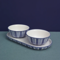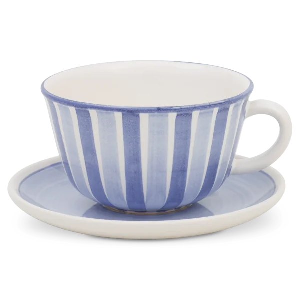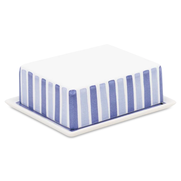 Faience bianca - strisce blu e azzurre - smalto lucido