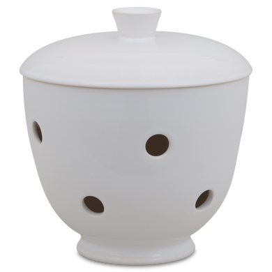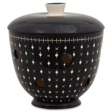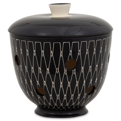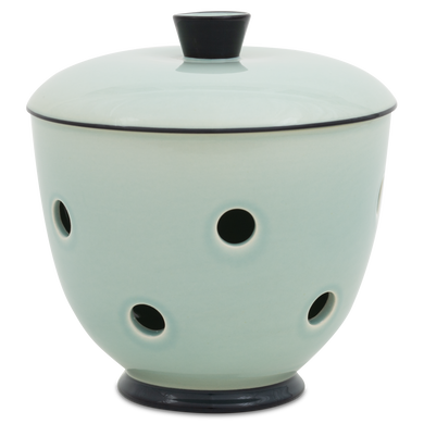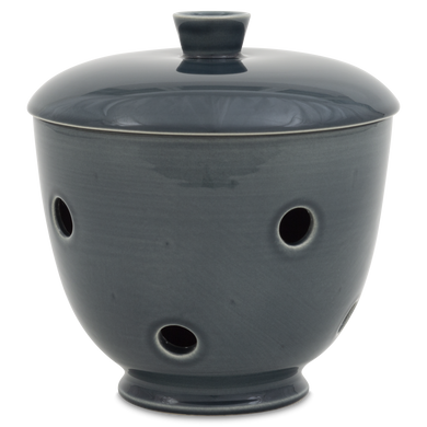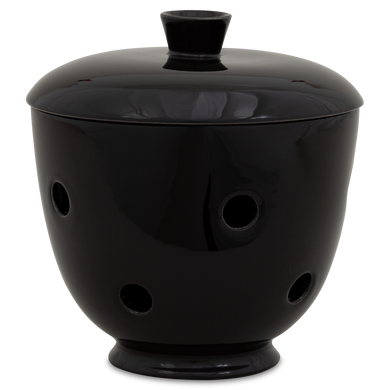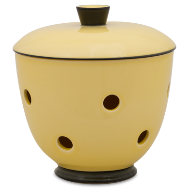 Il contenitore per cipolle con il codice “549DS” di Hedwig Bollhagen mette in mostra gli scalogni sulla mensola della cucina con uno stile intramontabile e raffinato. Il set composto da due pezzi, vaso e coperchio, con un’altezza di 14 centimetri offre spazio sufficiente per cipolle rosse, bianche o gialle. Caratteristica è la forma sferica e bombata del corpo, che si restringe conicamente verso l’alto. Il manico conico sul coperchio bombato verso l'alto completa armoniosamente il design. Grazie ai numerosi fori di aerazione distribuiti uniformemente e grandi circa un centimetro ciascuno, si evitano umidità e ristagni d'acqua. Una cosa è certa: all'interno buio del vaso per cipolle 549DS di Hedwig Bollhagen, questa sana pianta della famiglia delle Liliaceae rimane fresca a lungo e ha un aspetto davvero invitante.