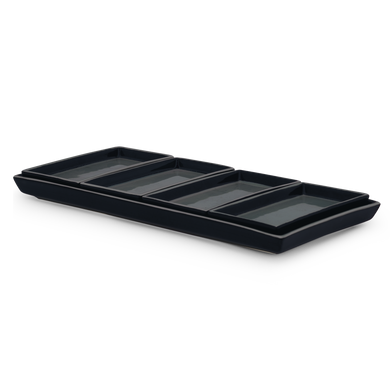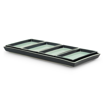 Con il set di 5 piattini HB 538 di Hedwig Bollhagen potrete trasformare ogni tavola in un'esperienza di stile. Il set è composto da un elegante vassoio rettangolare (HB 540) che, con i suoi 34 cm di lunghezza e 16 cm di larghezza, è ideale per pane, torte o tapas, ma fa bella figura anche come elegante vassoio da portata per arrosti o composizioni creative. Il vassoio da portata è accompagnato da quattro affascinanti coppette (HB 538) che, con il loro design minimalista e le dimensioni di 15 cm x 8 cm, sono versatili nell’uso. Che si tratti di antipasti, piccoli contorni o prelibatezze, le coppette si integrano perfettamente in ogni ambiente. Il linguaggio formale ricco di carattere della serie "Kabarett" unisce un'estetica senza tempo a un'artigianalità funzionale. Realizzato a mano nei laboratori di Marwitz, questo set mette in evidenza la tradizione artigianale e l'amore per i dettagli per cui Hedwig Bollhagen è nota dal 1934. Un set che arricchisce con eleganza la vostra arte della tavola e offre la soluzione giusta per ogni occasione.