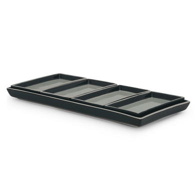 Con il set di 5 piattini HB 538 di Hedwig Bollhagen potrete trasformare ogni tavola in un'esperienza di stile. Il set è composto da un elegante vassoio rettangolare (HB 540) che, con i suoi 34 cm di lunghezza e 16 cm di larghezza, è ideale per pane, torte o tapas, ma fa bella figura anche come elegante vassoio da portata per arrosti o composizioni creative. Il vassoio da portata è accompagnato da quattro affascinanti coppette (HB 538) che, con il loro design minimalista e le dimensioni di 15 cm x 8 cm, sono versatili nell’uso. Che si tratti di antipasti, piccoli contorni o prelibatezze, le coppette si integrano perfettamente in ogni ambiente. Il linguaggio formale ricco di carattere della serie "Kabarett" unisce un'estetica senza tempo a un'artigianalità funzionale. Realizzato a mano nei laboratori di Marwitz, questo set mette in evidenza la tradizione artigianale e l'amore per i dettagli per cui Hedwig Bollhagen è nota dal 1934. Un set che arricchisce con eleganza la vostra arte della tavola e offre la soluzione giusta per ogni occasione.