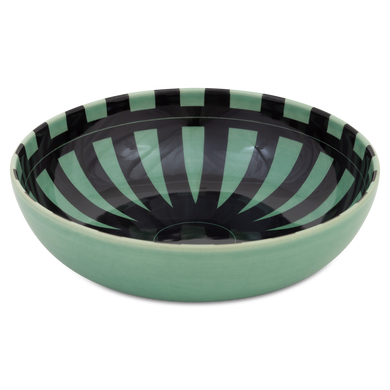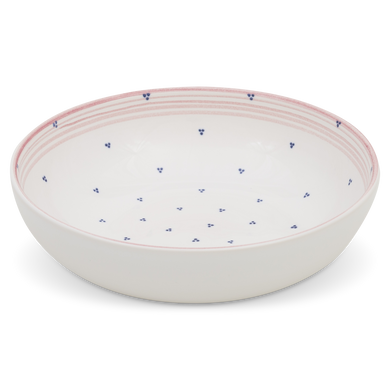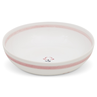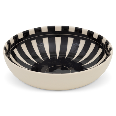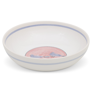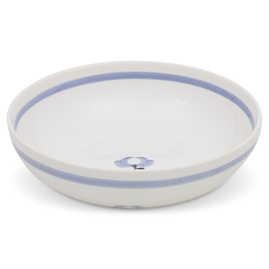 La ciotola di Hedwig Bollhagen con il codice «503C». Un tempo realizzata come ciotola per bambini, fa sicuramente crescere i più piccoli sani e forti. La caratteristica forma arrotondata della ciotola è inconfondibile. Più profonda di un piatto, più piatta di una ciotola, la scodella alta cinque centimetri e con un diametro di 18 centimetri è più di tre volte più larga che alta. Con una capacità di 0,3 litri, la scodella da minestra, che pesa 350 grammi, non è né troppo piccola né troppo grande. Che si tratti di spinaci, semolino o zucca bollita, anche i piccoli golosoni svuotano completamente la loro zuppiera in ceramica con i divertenti motivi. Dopotutto, almeno il piatto deve sembrare come se piovessero sempre e solo orsetti gommosi, cioccolato e caramelle.